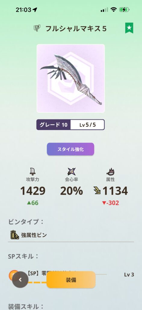 ところが、こちらも強化途中でスタイル強化が出来ないことに気付きました。ゴシャハギは登場したばっかりで次元変異モンスターがいません。しかし後戻りも出来ないため強化を続けることにしました。
