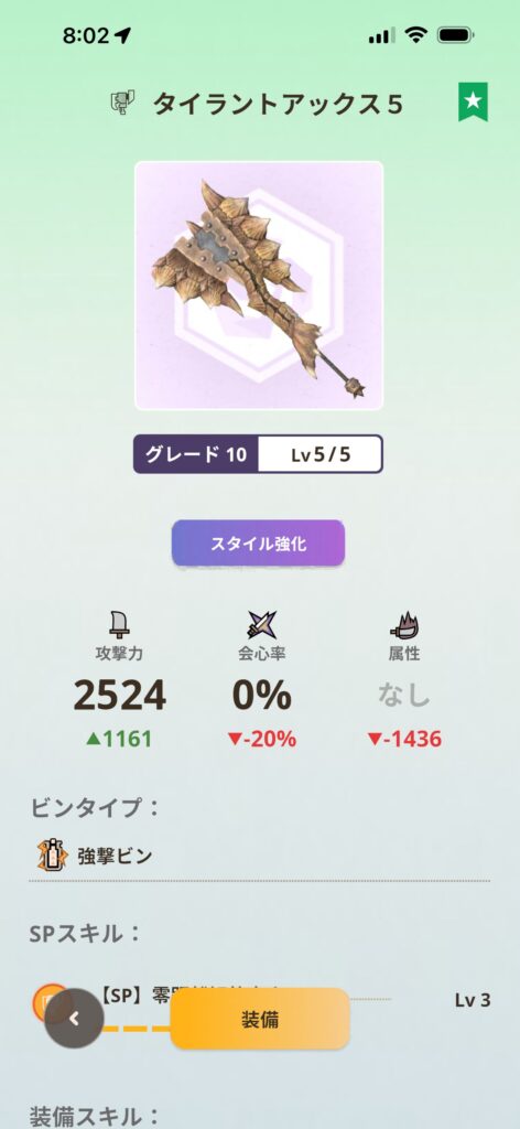 ※攻撃力2,689、会心率-3%、属性なし、防御力694