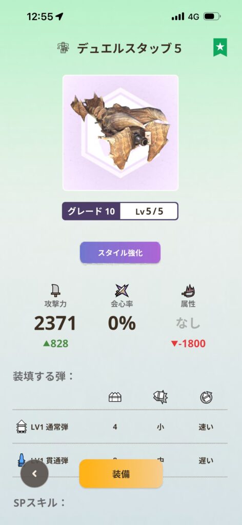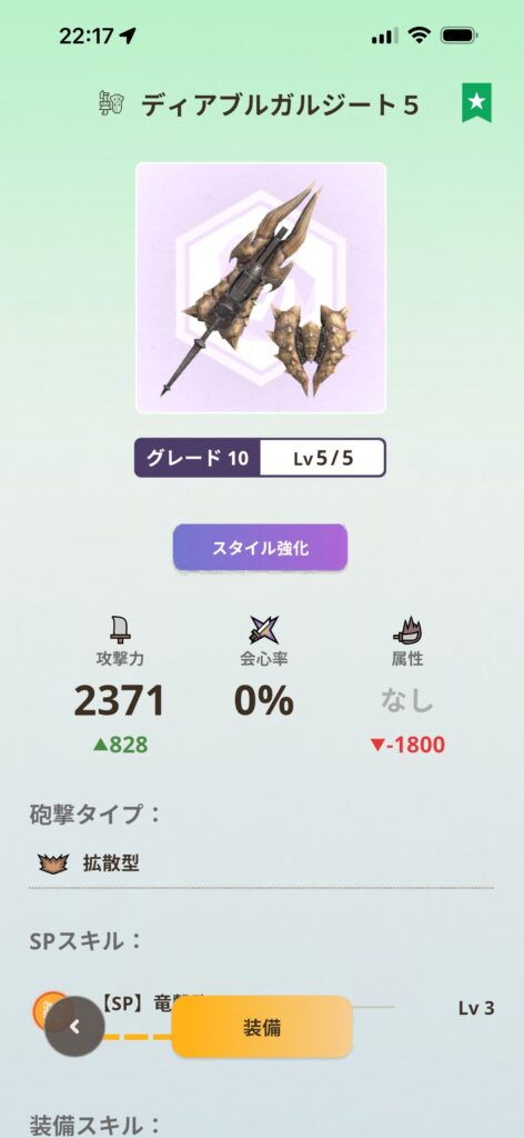 ディアガンスも強化は終了していますが、スタイル強化が進んでいません。またスキル構成もハンマー同様に使用していないため、イマイチ分かりません。