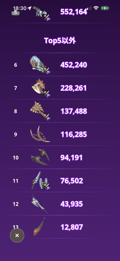 期待していたゴシャハンマーも私のPSでは難しかったようで、爆破の関係なのかマガド双剣がイビル双剣の上を行く結果ともなりました。