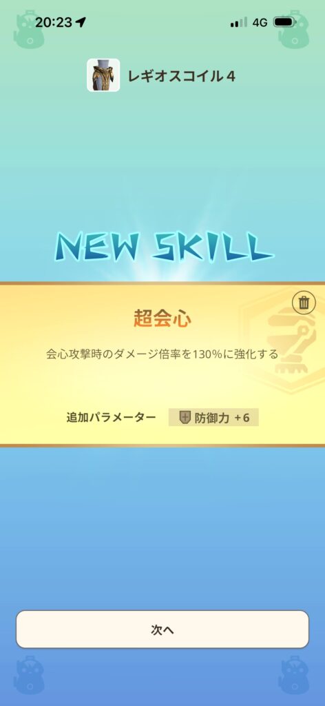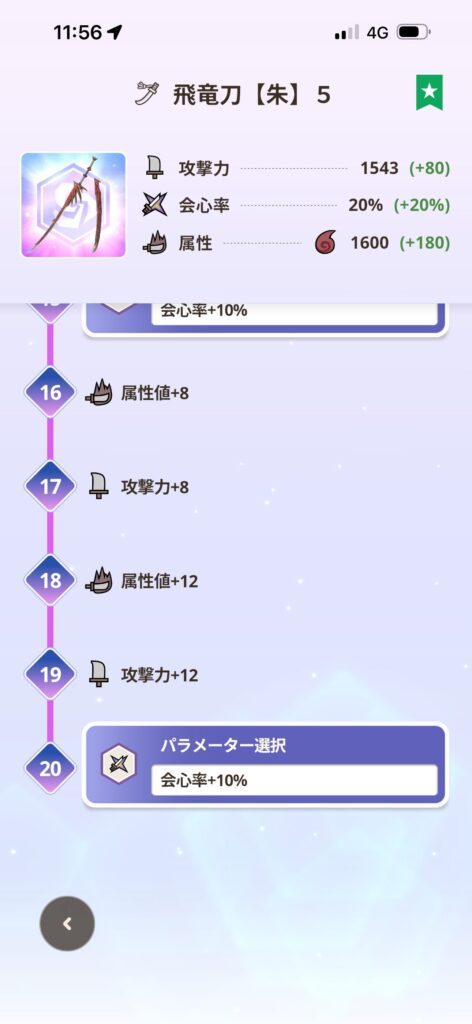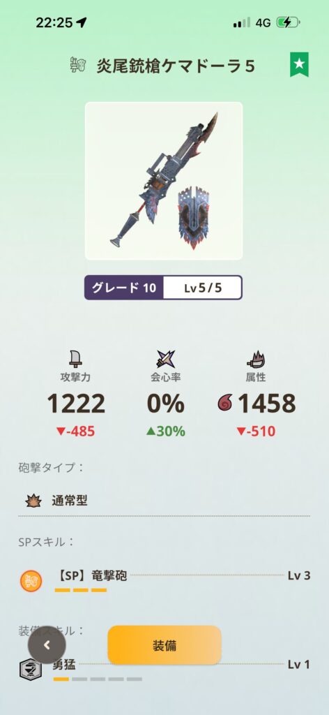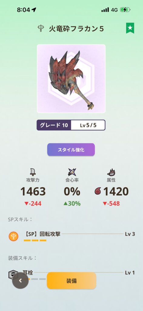 ※攻撃力1,552 会心率71%、属性1,500、防御力741