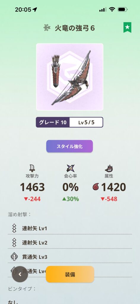 ・武器 レウス弓G10-5、S20 ※剛連射などを試す予定