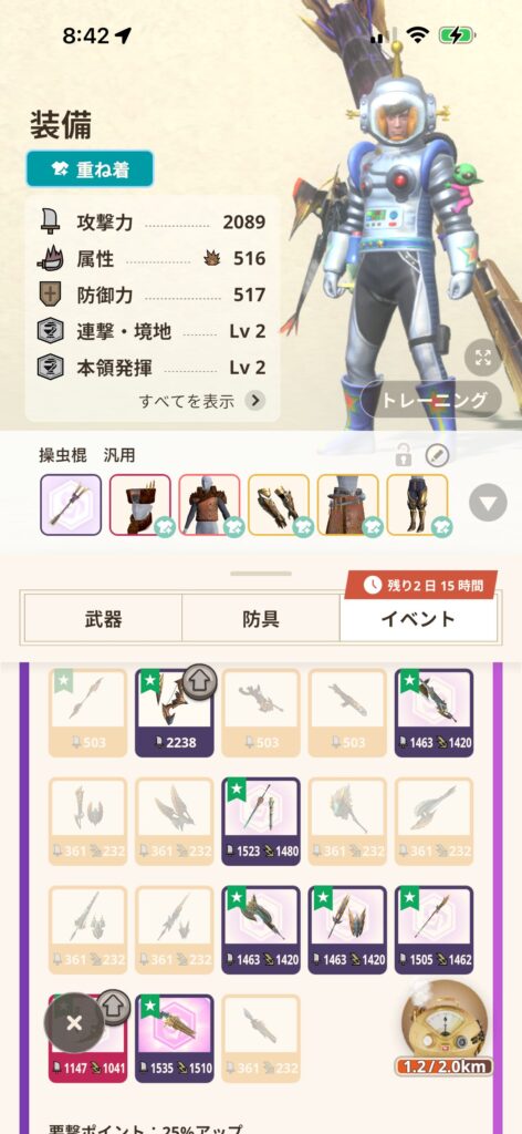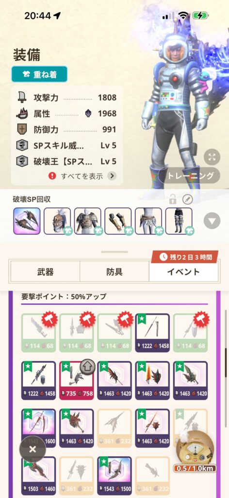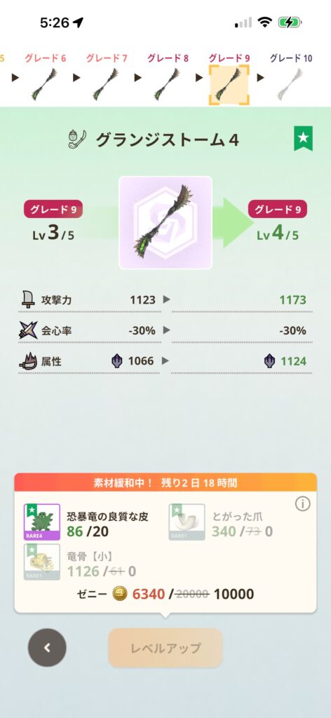 4回目に向けては武器の生産強化こそ頑張っていたものの、そろそろ時間が取りにくくなりそうです。そこで現在強化中の武器のみ可能な限り強化して本番に備える予定です。