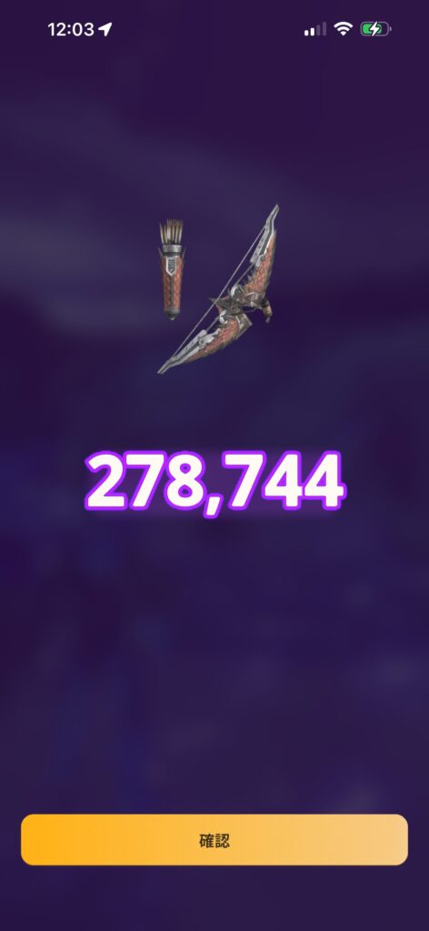ケマトリス武器はレウス武器で生産強化の予定が無かったガンス、次はポイントを狙いたい太刀、最後にレウス弓と同じ装備とスキル構成を利用できる弓をG10-5として、50%ポイントアップ武器が一応11本G10-5となりました。