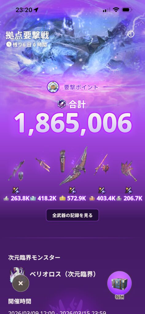 SNSでの情報通りディアヘビィはポイントが伸びましたが、3回目の次元臨海ベリオロス戦に向けてさらに準備する必要があると感じた結果となりました。