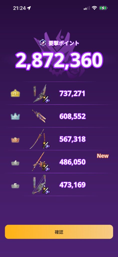 ハンマーのポイントは229,262となり、最終日を終えて2,872,360ポイントで終了しました。